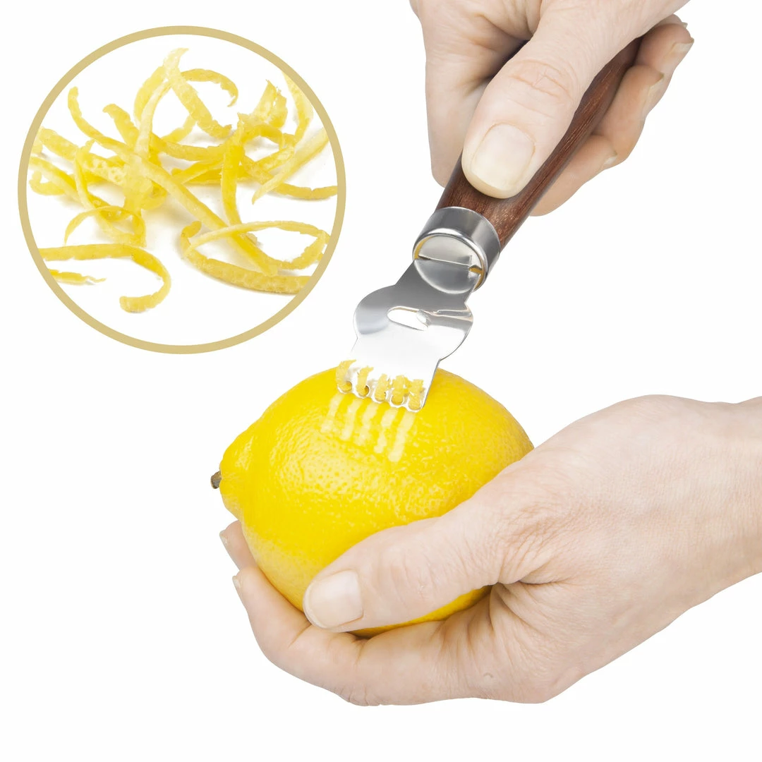 - Zester included for creating citrus zest or peel garnishes for cocktails