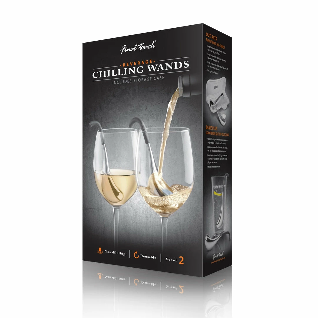 Enjoy cold beverages without the dilution from ice. These chilling wands contain a non-toxic cooling gel inside allowing them to withhold cold temperatures for longer and outlast traditional ice cubes. Because these chilling cubes never melt you can enjoy a more flavourful and colder drink. With the hooked shaped end you can easily insert, remove or let the wand hang from the glass. The included storage case helps to keep everything sanitary and organized when put back into the freezer.