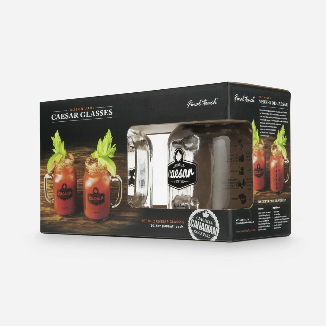 Serve up the ultimate Caesar with these vintage style mason jar glasses. Simply rim each glass, add ice & ingredients into each glass. Don’t know the recipe? No problem. Just follow the recipe printed directly on the back of each glass.