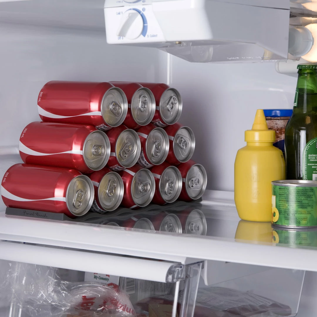 Free up some space in the beer or kitchen fridge with this clever can stacker. Made from silicone it is ideal for a 12 pack of can and can hold up to 15. The silicone base will not slip in the fridge when stacking or removing cans.