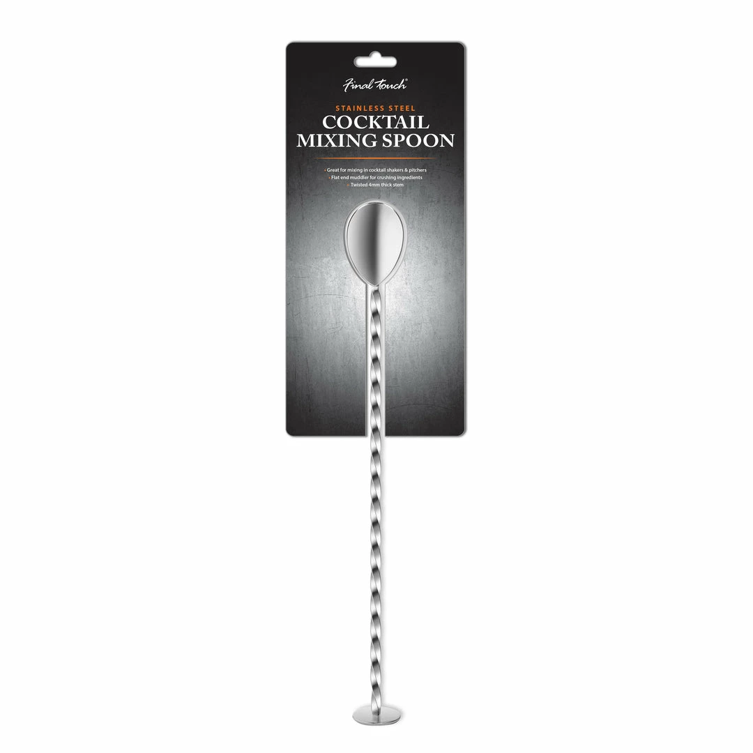 This cocktail mixing spoon is commonly used by bartenders for mixing and layering cocktails. Reaching almost 11 inches long, its length ensures you can reach to the bottom of the tallest pitcher, tumbler or shaker to evenly mix ingredients. The long twisted 4mm thick stem can be used to layer drinks and also features a flat end for crushing ingredients.