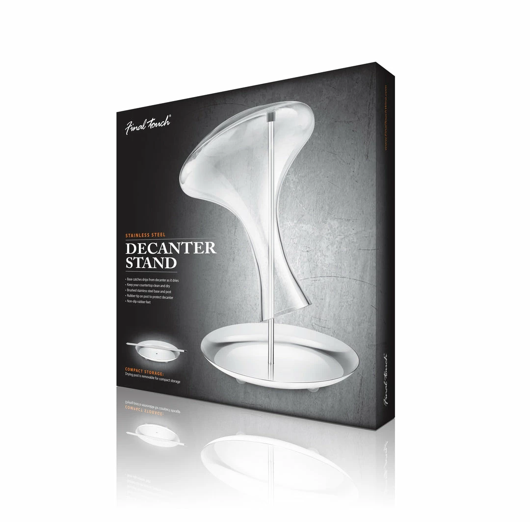 Protect your wine decanter from scratches and cracks with this convenient drying stand. This stand elevates the decanter and prevents it from becoming damaged from other glassware in drying racks. The stainless steel base catches falling drips from decanter while drying, keeping your countertop clean and dry. Additional rubber tip on post and non-slip rubber feet also help keep the decanter and countertop well protected.