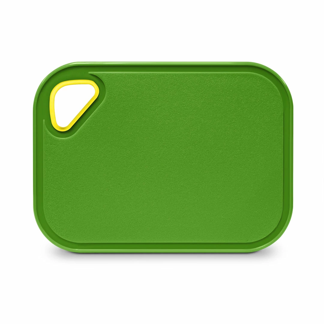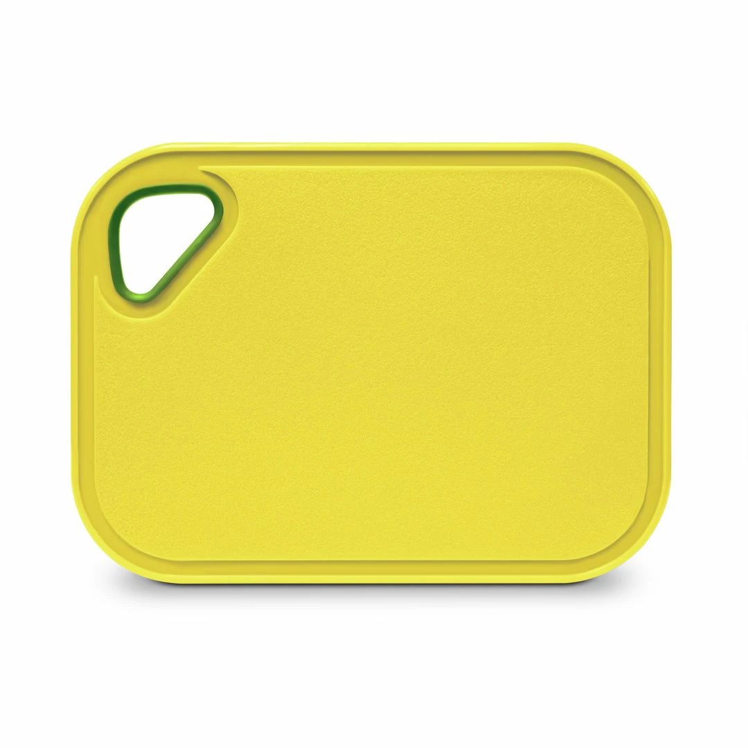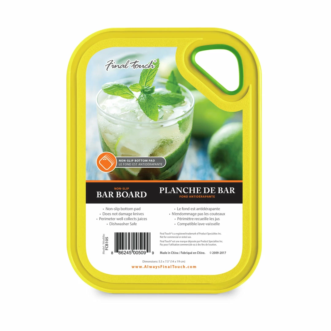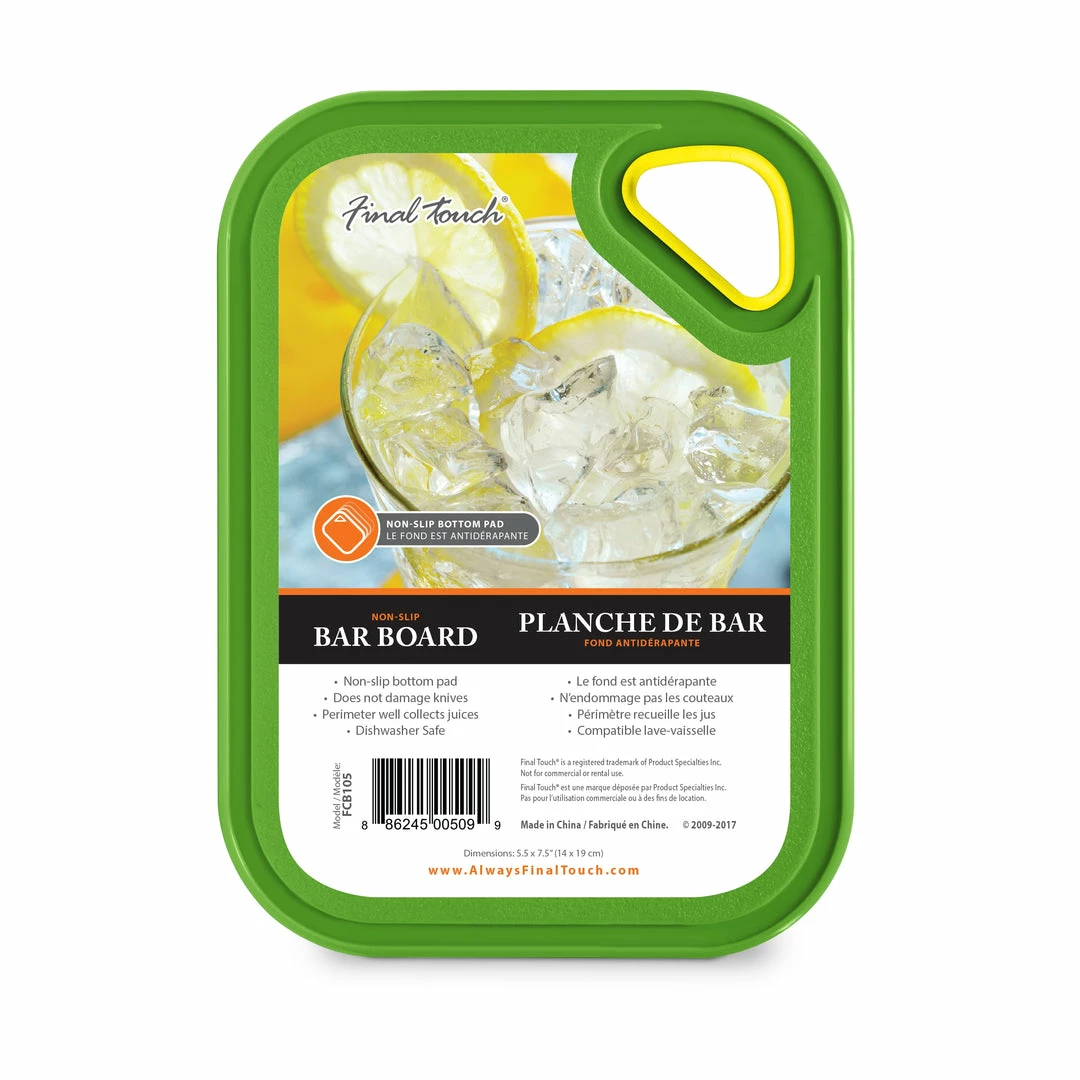 Use this conveniently sized cutting board in the bar or kitchen for cutting up smaller items like garnishes for cocktails. Each board features a non-slip bottom pad to minimize slipping accidents while cutting. The surrounding perimeter well collects juices and hole in corner provides hanging storage.