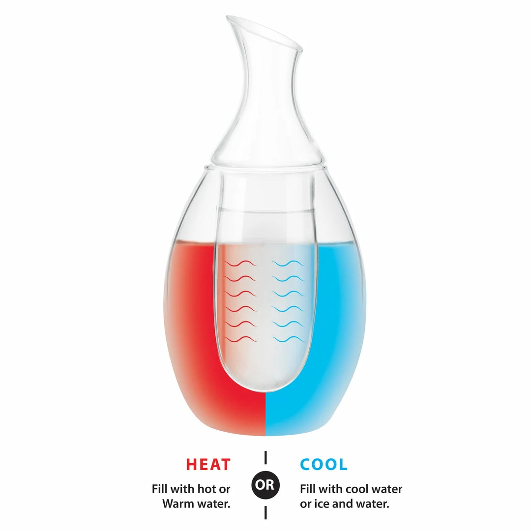 - Simply fill the bottom of the decanter with warm water or ice and water to help maintain temperature