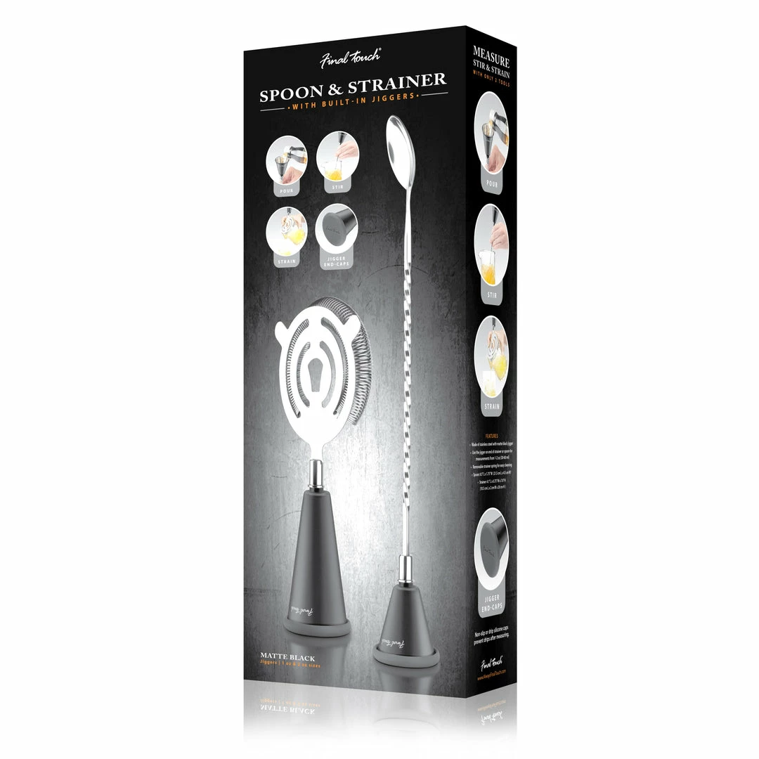 This multi-function tool set includes the essential tools for pouring, stirring and straining the perfect cocktail. Both the strainer and spoon feature built-in jiggers for quick and easy measurements from 1 to 2 oz.