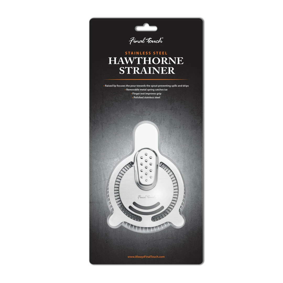 A perfect match for any cocktail shaker or mixing pitcher. Simply place this strainer on the top of the glass and use it to easily separate the ice from the cocktail. The raised lip focuses the pour towards the spout preventing spills and drips. While pouring place your finger on the built-in finger rest for improved grip and the metal spring is removable making cleaning easy.