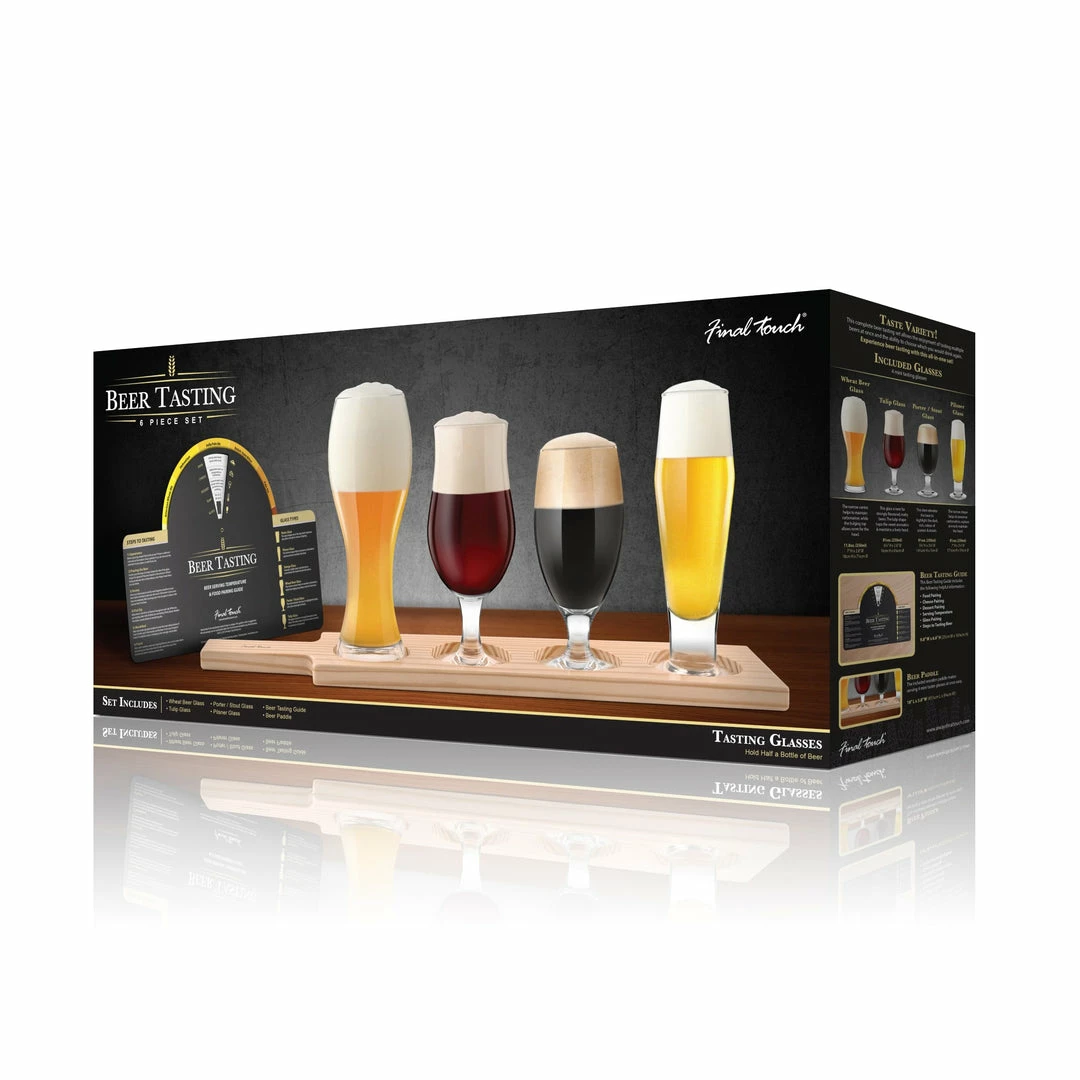 Taste Variety! This complete beer paddle tasting set allows the enjoyment of tasting multiple beers at once and the ability to choose which you would drink again. Experience beer tasting with this all-in-one set! The helpful beer tasting guide includes information on food pairing, cheese pairing, dessert pairing, serving temperature, glass pairing & steps to tasting beer.