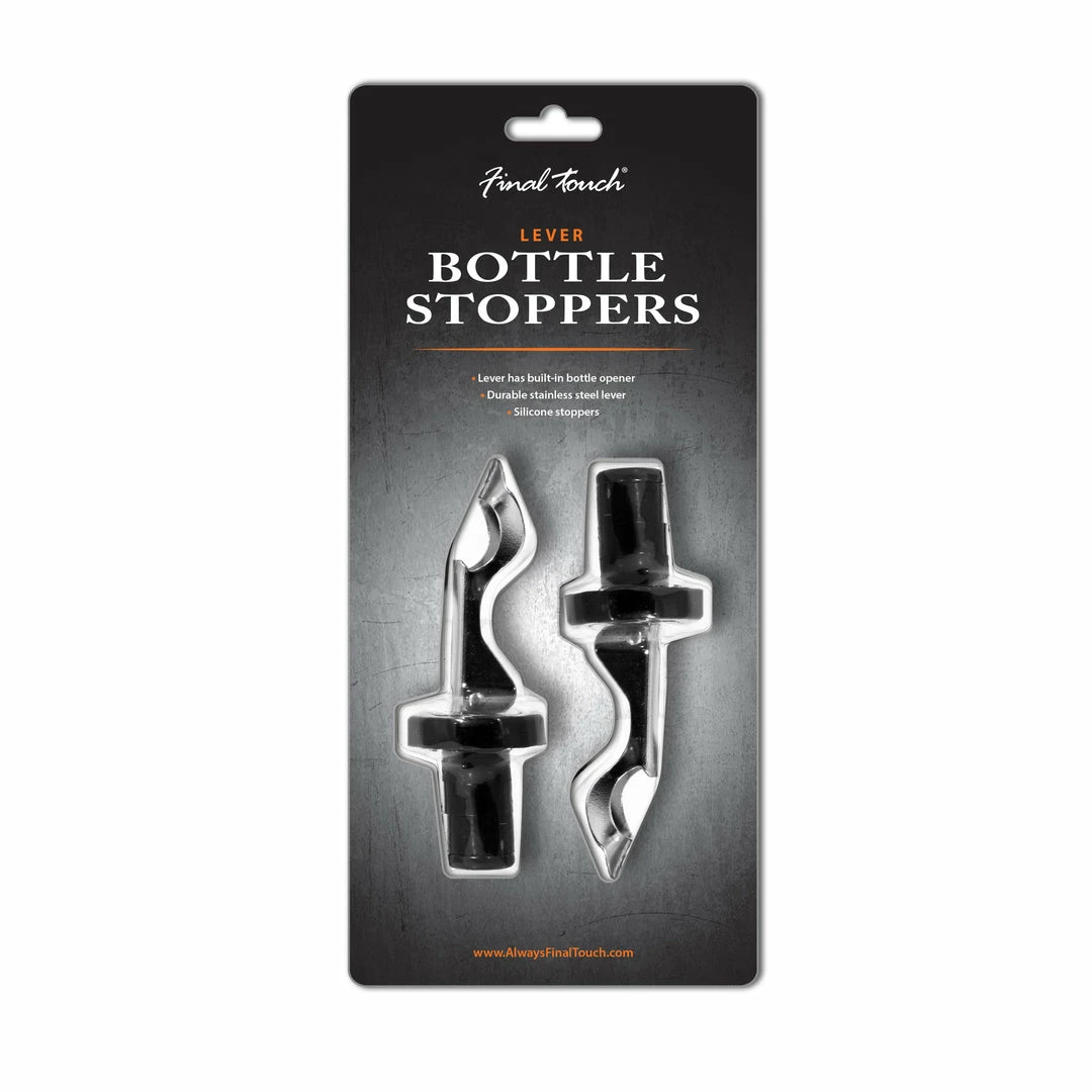 Keep your wine & liquor fresh for longer with these lever bottle stoppers. The lever is made from durable stainless steel and features a convenient bottle opener right on the lever. Pull the lever up, place into the bottle opening & pull the lever down to seal the bottle.