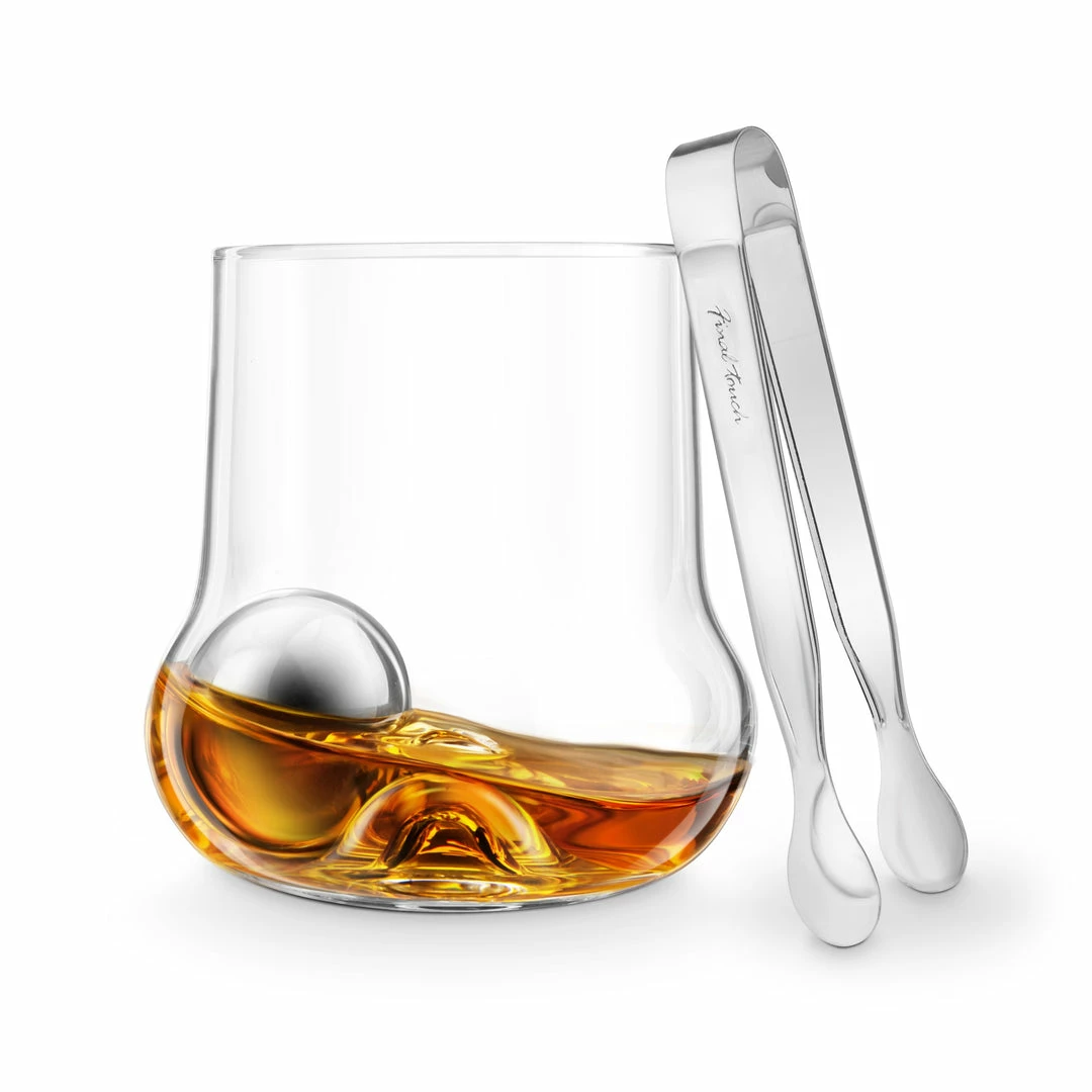 - Evenly and cools your favourite scotch, whiskey or liquor to perfection! Shape of glass is specifically designed to conform to the shape of the chilling ball.