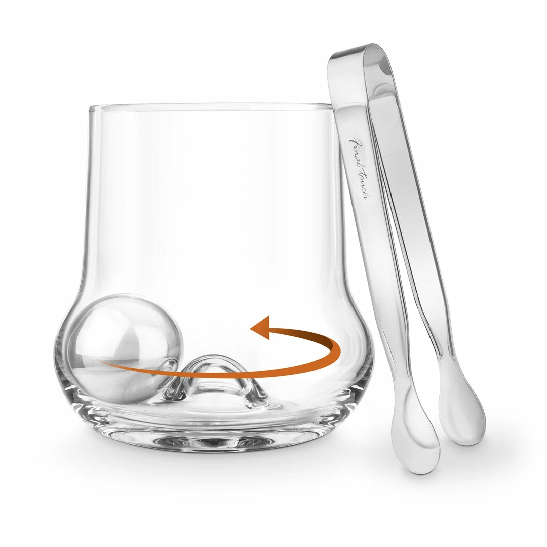 The RockRoller brings two elements, chilling & motion, to the scotch or whiskey drinking experience. The stainless steel chilling ball chills faster and longer with ZERO dilution. A simple wrist motion rolls the chilling ball around the bottom and the outward curve prevents it from rolling out while sipping.