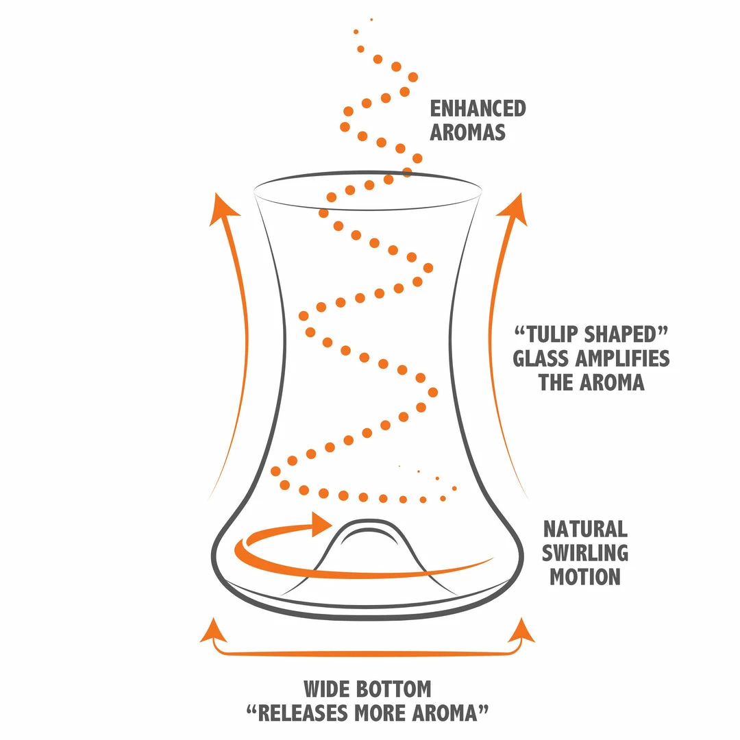 Perfectly designed for rum, this glass helps you to taste and discover the complexity of aged rums. The curved profile of the glass flares out at the top to help release aromas within the lower bulb. The bottom of the glass features a peak which creates a natural liquid motion further increasing the nosing of aromas.
