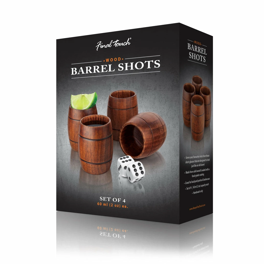 - Serve your favourite shots from these shots glasses that are designed to look just like an old barrel