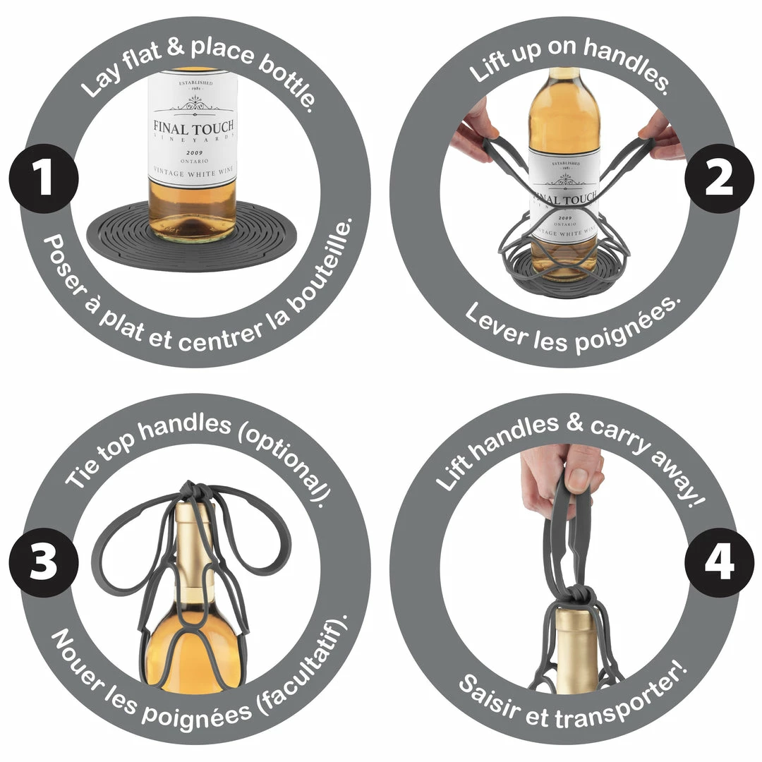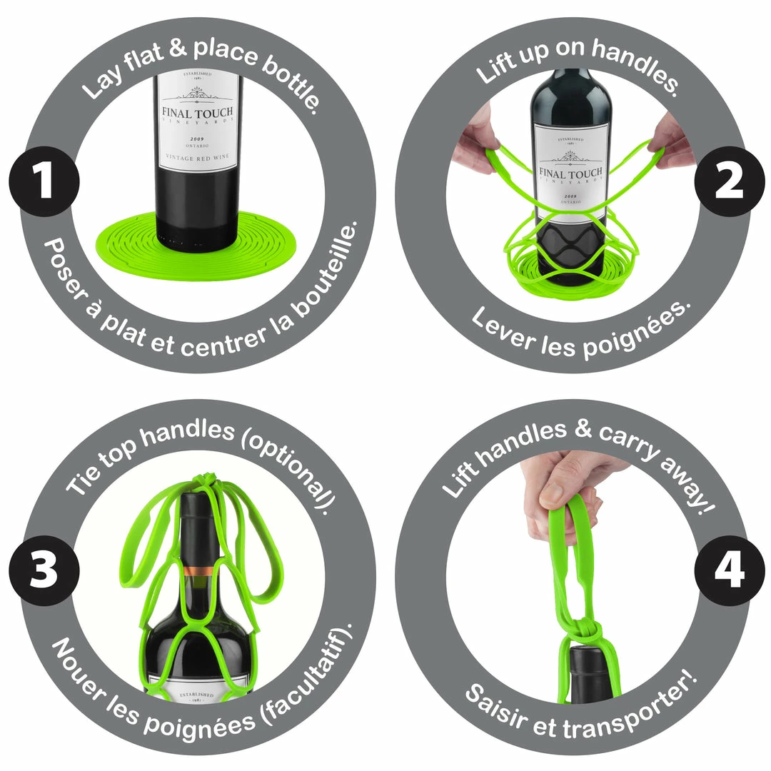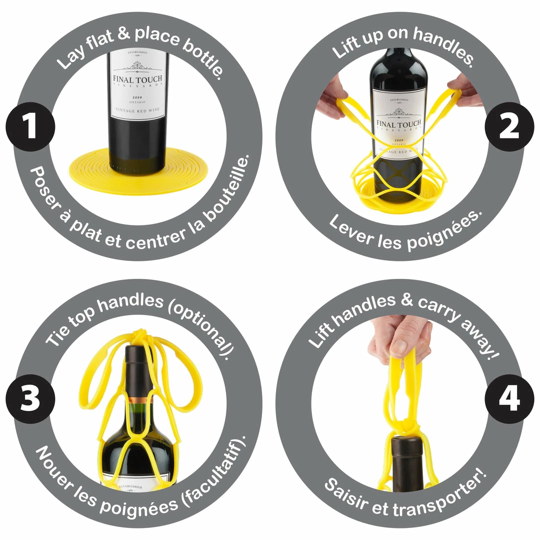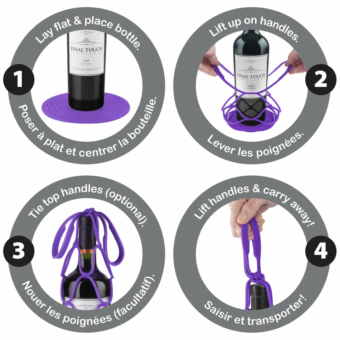 The Up & Away Collapsible Silicone Bottle Bag is the extremely compact & eco-friendly way to carry bottles. Use it to carry wine, liquor and soda bottles for a great alternative to paper or plastic bags. The soft BPA-free & certified food-grade silicone helps to protect the bottle and also can be used as a coaster or pot trivet.