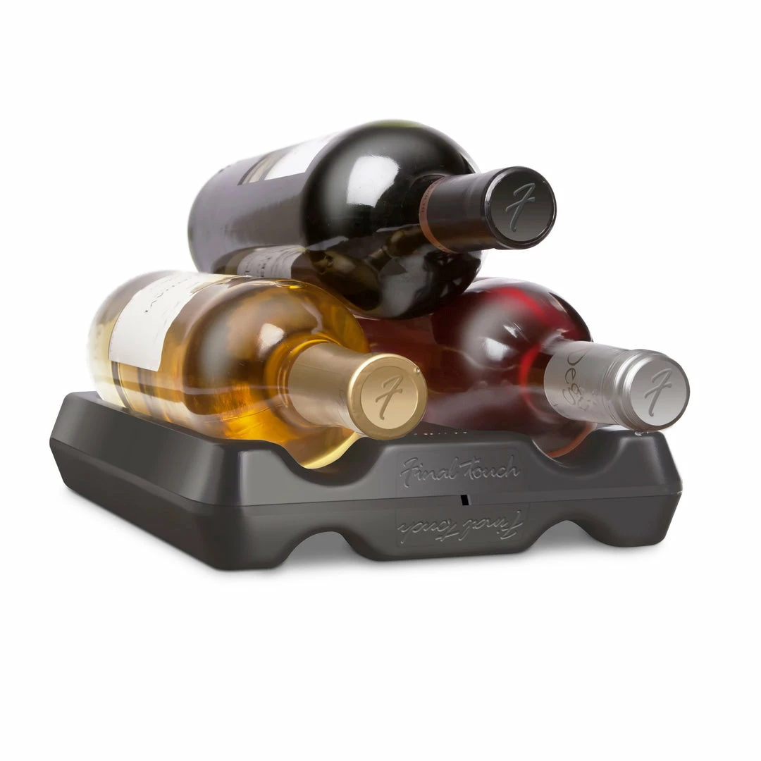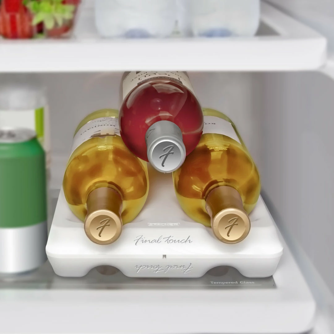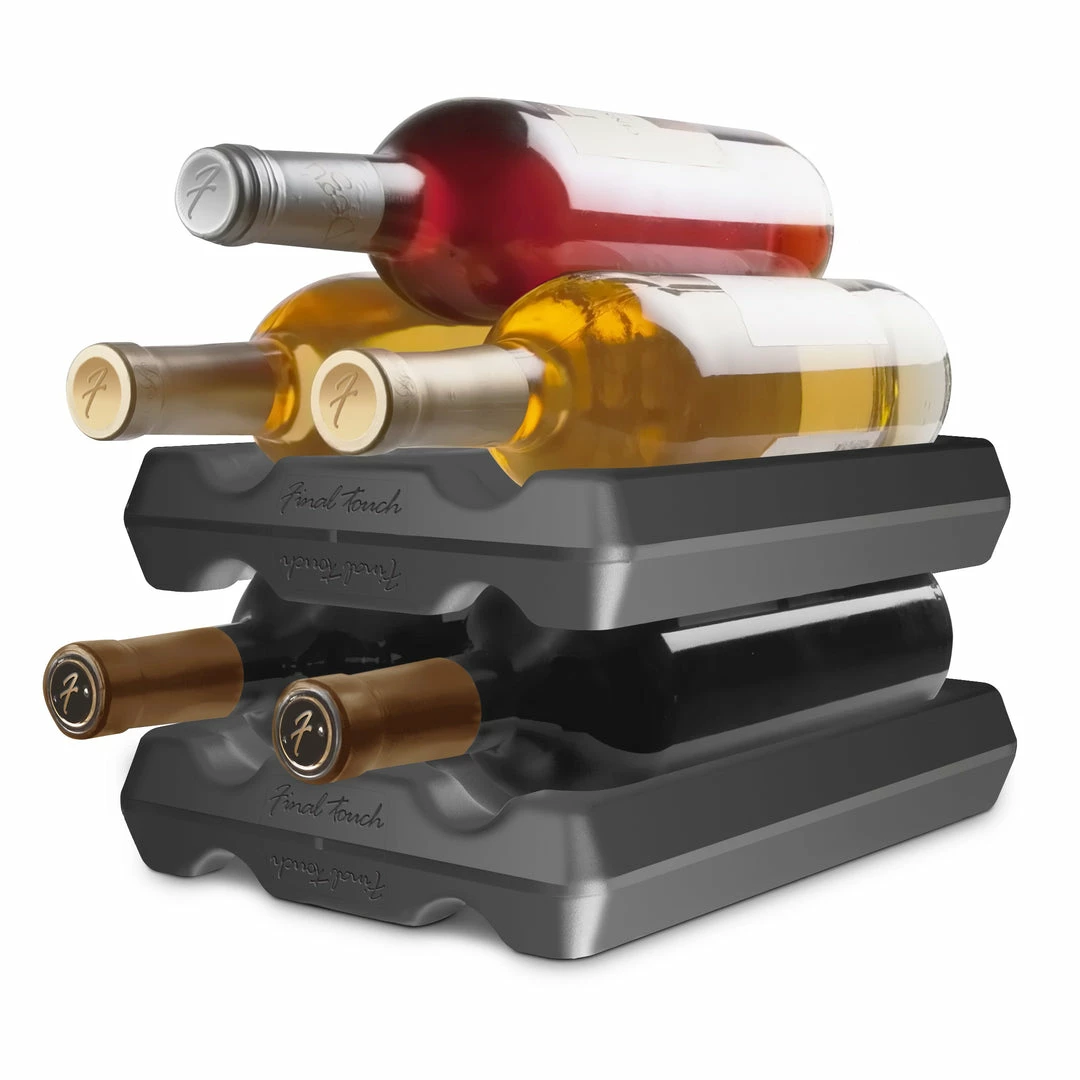 Use this modular wine rack to stack and organize your wine bottles in the fridge or on the counter. Place in the fridge for horizontal storage with no rolling. One wine stacker can be used to stack one on top of another or split into two halves and use in the pyramid configuration.